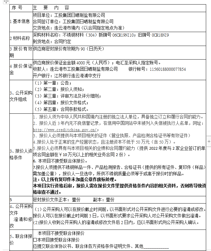 報價保證金接收人:連云港市工投集團(tuán)日曬制鹽有限公司。