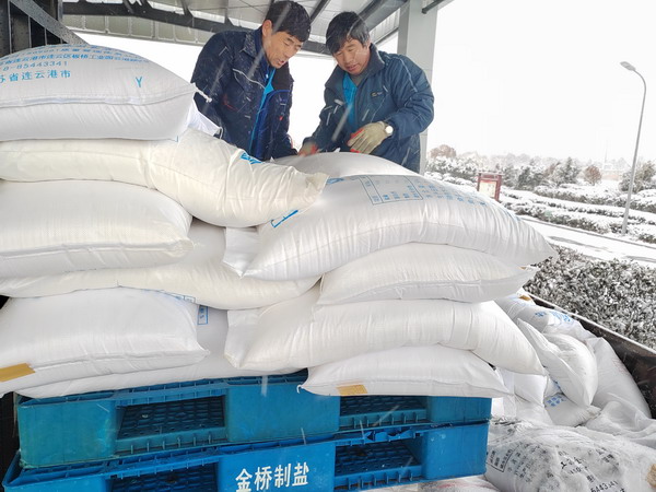 抓好“提前量”,做實(shí)保供應(yīng)。公司密切關(guān)注天氣變化情況,落實(shí)落細(xì)各項(xiàng)措施,全力確保應(yīng)急工作有效開展。按照集團(tuán)部署,迅速啟動融雪鹽保供應(yīng)急預(yù)案,生產(chǎn)部門提前調(diào)整生產(chǎn)計劃,開足馬力、釋放產(chǎn)能;銷售部門提前布置、統(tǒng)籌調(diào)運(yùn),確保融雪鹽配送車輛及時到位,不影響發(fā)運(yùn)。