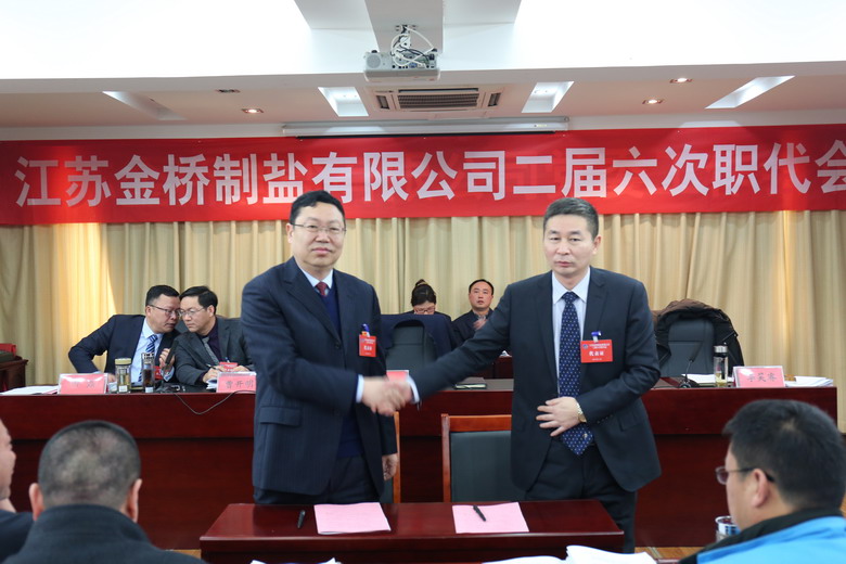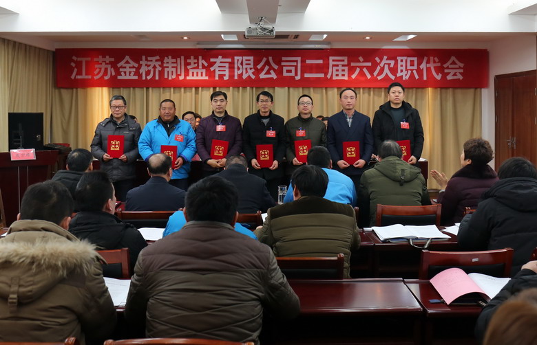 大會(huì)簽訂了《2019年度集體合同》、《2019年度經(jīng)營(yíng)認(rèn)標(biāo)責(zé)任書》,與會(huì)代表認(rèn)真審議通過了總經(jīng)理工作報(bào)告,通過了大會(huì)決議、有關(guān)方案和意見。金橋包裝公司、加工鹽車間、質(zhì)量管理部、品種鹽分公司依次作了表態(tài)發(fā)言。大會(huì)表彰了2018年度先進(jìn)單位、先進(jìn)部室、先進(jìn)班組、優(yōu)秀員工、各類標(biāo)兵和金橋小工匠。(金宣)