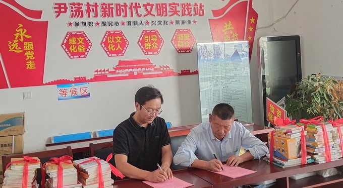 公司黨委副書記、紀(jì)委書記、工會主席曹開明,灌南縣北陳集鎮(zhèn)尹蕩村黨總支書記孫克玉代表共建雙方續(xù)簽共建協(xié)議;向該村贈送了名人傳記、農(nóng)技推廣和文學(xué)藝術(shù)等各類圖書100余冊,向鄉(xiāng)民贈送了文明共建紀(jì)念品;參觀了該村黨員活動室、黨史室、村史陳列室,聽取了孫克玉對該村概況的介紹。