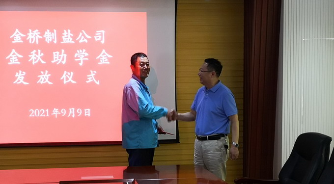 9月9日下午,我公司舉行金秋助學金發(fā)放儀式,公司黨委書記、董事長、總經(jīng)理朱桂玉為受助學子家庭發(fā)放助學金,公司黨委副書記、紀委書記、工會主席曹開明主持發(fā)放儀式。
