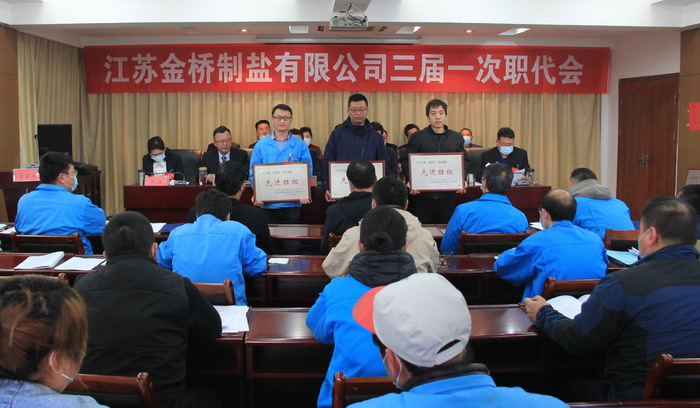 大會簽訂了《2021年度集體合同》、《2021年度經(jīng)營認標責任書》,與會代表認真審議通過了總經(jīng)理工作報告,通過了大會決議、有關方案和意見。加工鹽車間、包裝鹽車間、銷售部依次作了表態(tài)發(fā)言。大會表彰了第九屆“金橋杯”勞動競賽、2020年“大干四季度”勞動競賽的先進集體和先進個人以及2020年度“金橋工匠”。(金宣)