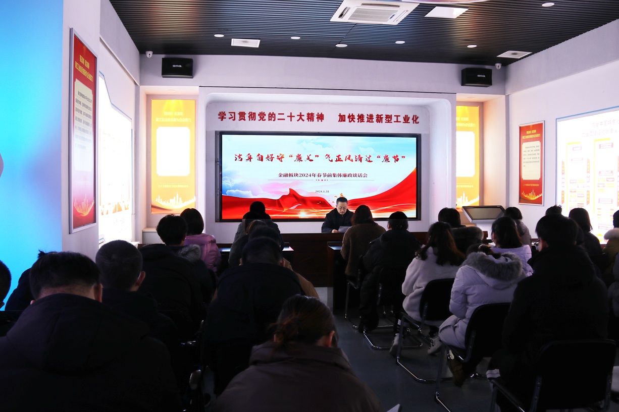 “廉關(guān)”,過好迎新“廉潔年”。清心為治本,直道是身謀。金融板塊從金融領(lǐng)域的特殊性出發(fā),本著廉政談話全覆蓋的原則,緊盯春節(jié)節(jié)點、緊盯常見“節(jié)日病”,要求黨員干部以上率下,嚴格要求自己、嚴格帶好隊伍,守好責任田,管好身邊人,做到過節(jié)不忘警惕,過節(jié)不忘紀律,過節(jié)不忘盡責,嚴格執(zhí)行中央八項規(guī)定,時刻保持自省、自警、自律、自勵,清廉過節(jié),堅決杜絕“節(jié)日腐敗”。