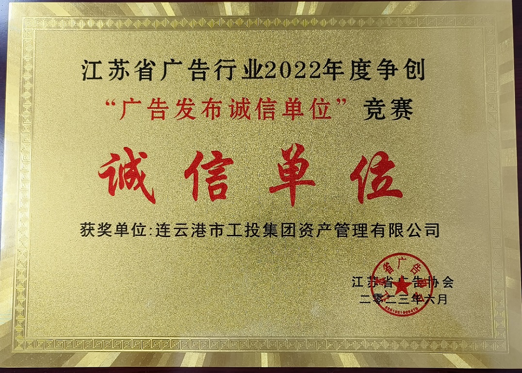 喜報!資產(chǎn)管理公司榮獲江蘇省廣告行業(yè)發(fā)布誠信單位稱號