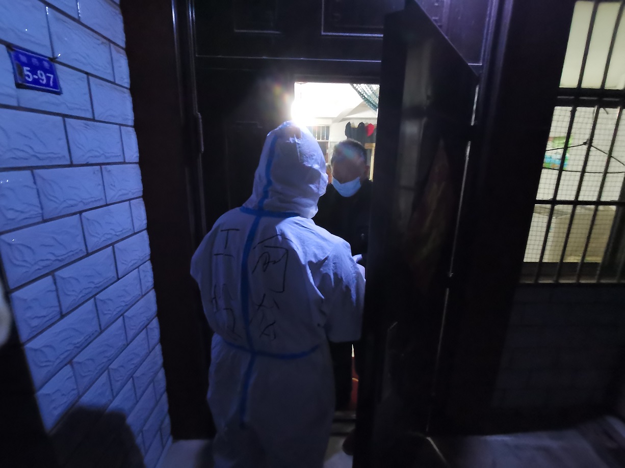“終于完成任務(wù)了”,看著已被雨水打濕的安裝名單,工投金融板塊的三名志愿者長長地舒了一口氣。志愿服務(wù)隊進(jìn)駐當(dāng)天就按照社區(qū)的統(tǒng)一安排,立即開展了門磁安裝門磁等一線工作。由于新橋社區(qū)是本輪疫情最早的“爆發(fā)點”,且轄區(qū)內(nèi)多為老舊小區(qū),街巷縱橫、門牌號排列混雜,群租、合租情況普遍,外來務(wù)工人員較多,給安裝工作造成了較大難度,恰巧當(dāng)天夜里下起了大雨,雨水遮擋視線,讓原本復(fù)雜的工作更添新的困難。志愿者一邊電話聯(lián)系,一邊用手電查找街邊的門牌,經(jīng)過3個半小時的摸排,終于完成了全部的安裝任務(wù)。