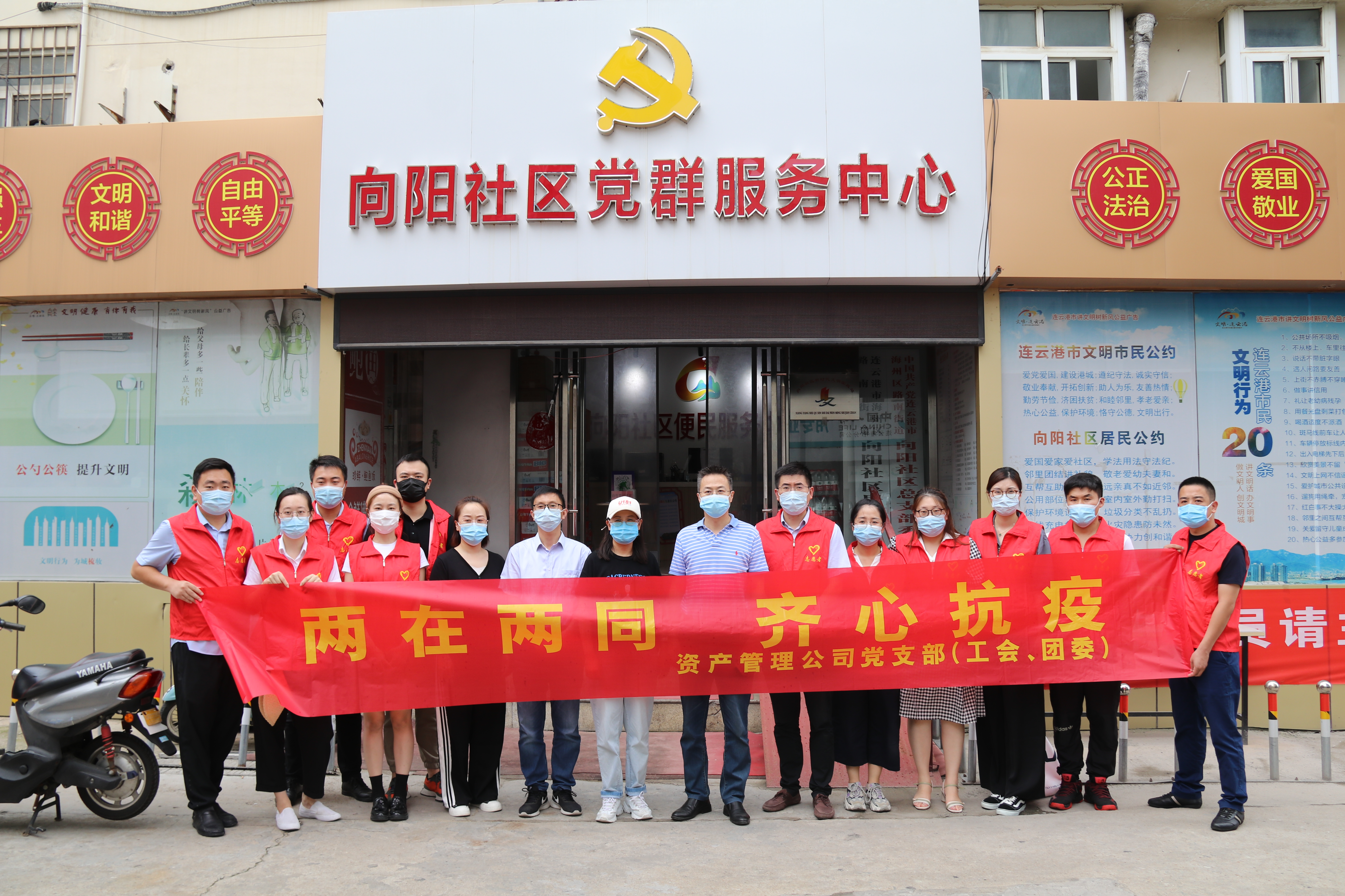 該支部動員20名黨員、青年志愿下沉到抗疫一線,配合海州區(qū)向陽社區(qū)開展聯(lián)動防控,排查走訪,蹲點值守,引導(dǎo)社區(qū)居民及時接種疫苗,構(gòu)筑起疫情防控堅實屏障。8月25日,該支部聯(lián)合海州區(qū)向陽社區(qū)開展“兩在兩同齊心抗疫”主題黨日活動。通過慰問社區(qū)防疫工作者,為其捐贈物資;檢查行程碼、測量體溫,登記疫苗接種情況、通知全民核酸檢測,宣傳防疫政策等工作,有效緩解社區(qū)防疫工作壓力,切實踐行“三個服務(wù)”。