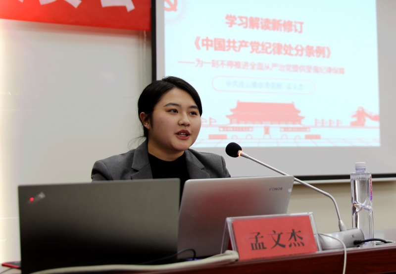 學(xué)《條例》,明紀(jì)律。特邀請市委黨校孟文杰老師,對新修訂的《中國共產(chǎn)黨紀(jì)律處分條例》進(jìn)行專題輔導(dǎo)。孟老師從深刻理解《條例》修訂的重要亮點(diǎn)、準(zhǔn)確把握《條例》修訂的主旨要義、切實(shí)抓好《條例》的貫徹執(zhí)行三個方面作了精彩解讀,并堅持理論密切聯(lián)系實(shí)際,結(jié)合與修改內(nèi)容相關(guān)的案例及視頻,提醒廣大黨員干部嚴(yán)于律己、防微杜漸,讓全體黨員干部受益匪淺。