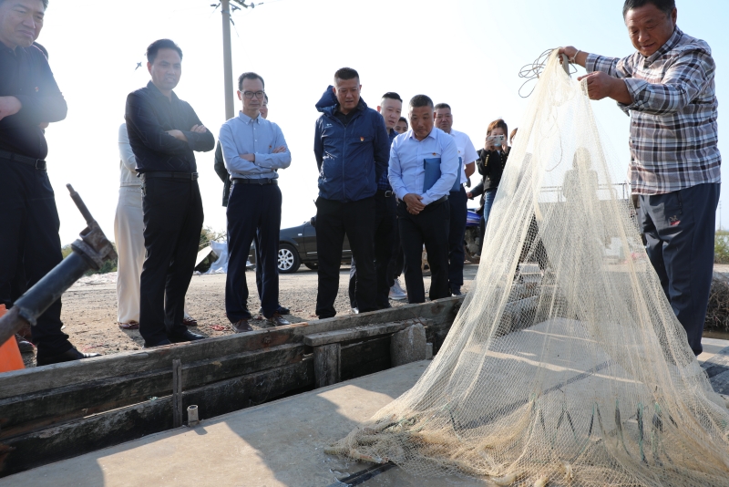 一把旋網(wǎng)撒進(jìn)池塘,捕撈起肥美的魚蝦。在三洋分場生態(tài)養(yǎng)殖示范崗,生態(tài)養(yǎng)殖帶頭人姜偉介紹當(dāng)前養(yǎng)殖情況,觀摩組通過看水產(chǎn)品、聽匯報(bào),深入了解生態(tài)養(yǎng)殖示范崗的創(chuàng)建成效。