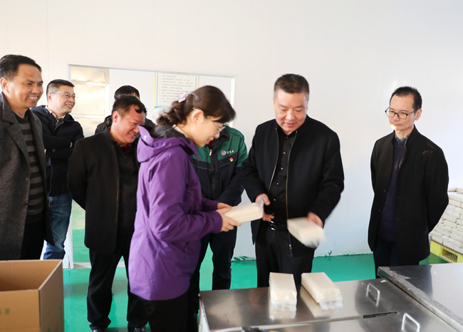新米上市,線上線下同步火爆銷售,“鹽田玉”大米生產(chǎn)加工車間有條不紊忙碌著,流水線上的工人們,熟練的將大米裝袋、封口、堆碼整齊。青口公司史書記向汪書記一行,詳細(xì)介紹大米的生產(chǎn)、銷售、市場(chǎng)行情,并匯報(bào)明年新產(chǎn)品開發(fā)和產(chǎn)線延伸思路,汪書記給予充分肯定,并強(qiáng)調(diào)三點(diǎn):一是做好大米銷售運(yùn)輸同時(shí),提高防范意識(shí),做好疫情防控工作;二是結(jié)合線上線下資源,做好品牌營(yíng)銷工作;三是深入調(diào)研,提前謀劃,做好新產(chǎn)品開發(fā)工作。