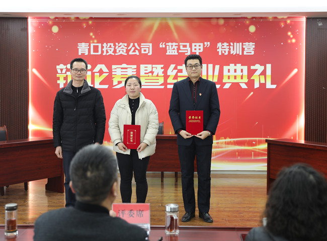 在“藍馬甲”特訓(xùn)營結(jié)業(yè)典禮中,宣布10名優(yōu)秀學(xué)員獲得者,王璐、吳典彤代表優(yōu)秀學(xué)員發(fā)言。公司黨委副書記、總經(jīng)理史祥平為全體藍馬甲學(xué)員頒發(fā)結(jié)業(yè)證書。