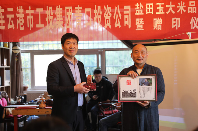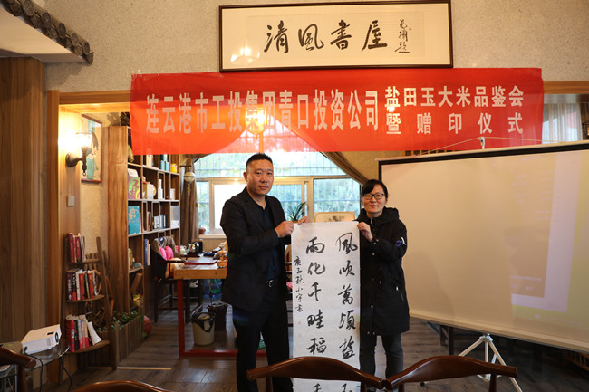 10月16日,青口投資公司米業(yè)營銷中心在海州區(qū)清風(fēng)書屋開展“鹽田玉大米品鑒會(huì)暨贈(zèng)印活動(dòng)”。投資公司董事長胡傳法、中國書法家協(xié)會(huì)會(huì)員汪鐵穎以及部分連云港市海州區(qū)書法家協(xié)會(huì)會(huì)員參加活動(dòng)。
