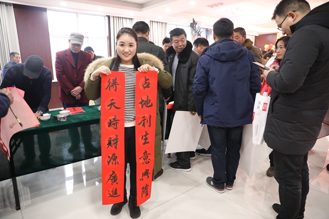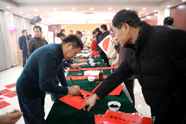 春節(jié)前夕,喜氣洋洋,為了營(yíng)造祥和歡樂(lè)的節(jié)日氛圍,弘揚(yáng)中國(guó)傳統(tǒng)文化,公司邀請(qǐng)連云港市簡(jiǎn)帛書(shū)法協(xié)會(huì)的老師們來(lái)到青口公司,義務(wù)為民寫(xiě)春聯(lián),送祝福。