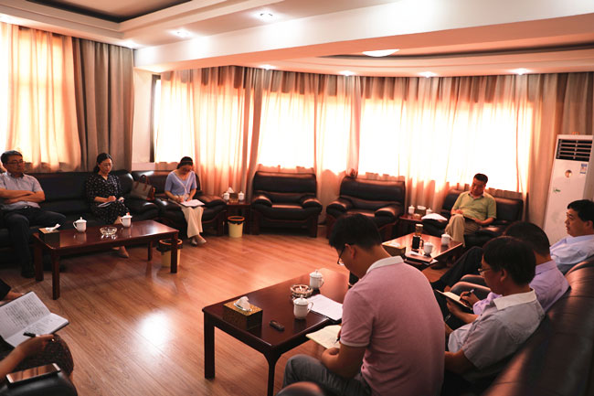 8月8日上午,開發(fā)區(qū)社會事業(yè)局局長蘇月虹、猴嘴街道黨工委副書記、辦事處主任趙士安一行4人到我公司專題調研青口鹽場社會職能移交事務。公司董事長、黨委書記胡傳法,總經(jīng)理史祥平陪同調研。