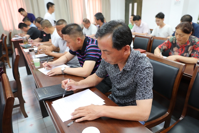 培訓(xùn)結(jié)束后,全體人員參加安全知識(shí)隨堂測驗(yàn)。 (顧 益)