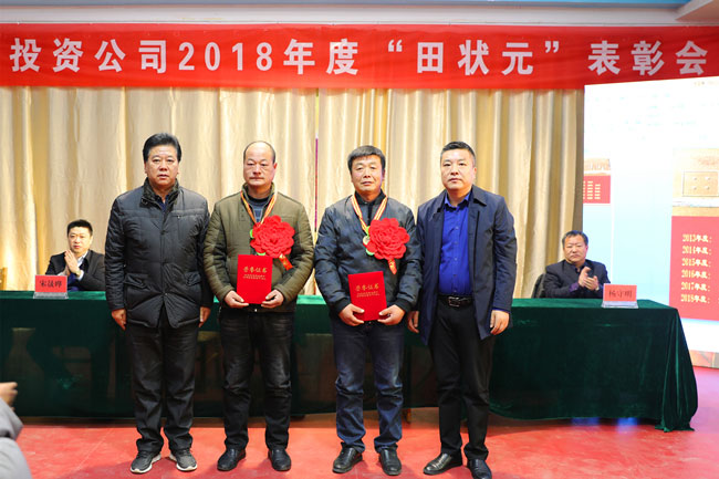 11月29日,在職工活動室隆重舉行2018年度“田狀元”表彰大會。投資公司黨委書記、董事長胡傳法及班子全體成員參會?;鶎痈笨萍壱陨?、機關(guān)全體管理人員及部分條田工參加。會議由投資公司黨委副書記、工會主席史祥平主持。