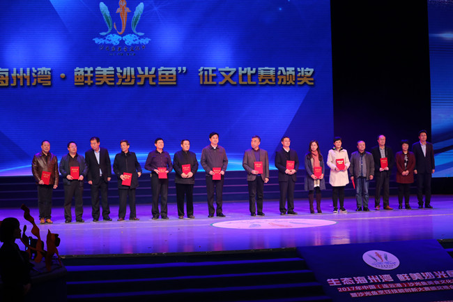 在2017中國(guó)(連云港)沙光魚美食文化節(jié)頒獎(jiǎng)晚會(huì)現(xiàn)場(chǎng)舉行了“生態(tài)海州灣 鮮美沙光魚”專題征文比賽頒獎(jiǎng)儀式上,胡傳法董事長(zhǎng)榮獲大賽一等獎(jiǎng)。