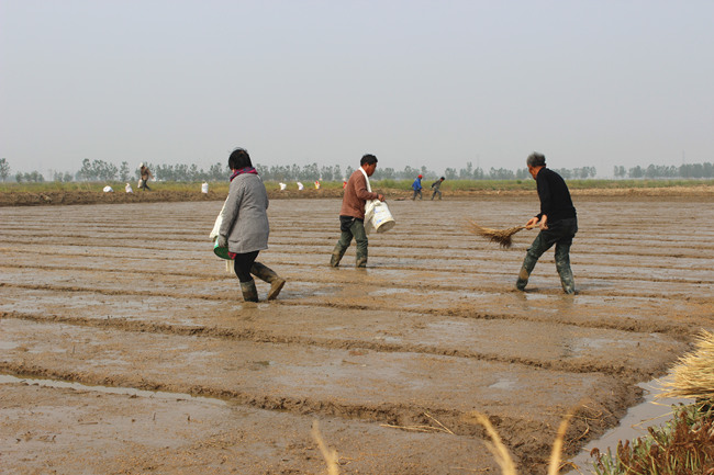早在4月份,深入田間,就可見緊鑼密鼓的落谷育秧場景。明威公司4月15日完成秧田開溝、打埂、整平,17日開始浸種工作,并同步對秧田進(jìn)行上水洗鹽排堿及上水整平;4月22日正式實(shí)施秧田落谷工作,截止26日,全面完成自種2485畝秧田落谷工作。