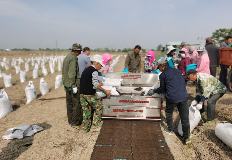 5月9日,大新農(nóng)場全面啟動育秧作業(yè),工人們在水稻育秧播種機兩側(cè),分工有序地進行流水線育秧,確保農(nóng)業(yè)生產(chǎn)開好局、起好步。據(jù)統(tǒng)計,今年自營農(nóng)田共6228畝,預(yù)計需播機插秧27萬盤。(劉楊)