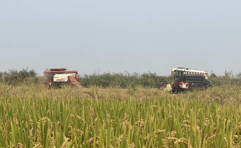 ? ? ? ?10月13日,大新農(nóng)場50余畝稻花香水稻迎來成熟期,開鐮收割。在金色的稻田里,稻谷隨著秋風翻起波浪,空氣中裹挾著稻米的清香。轟隆隆的收割機來回穿梭在稻田之中“作畫”,眼前呈現(xiàn)出一派秋收的忙碌景象。(王璐)