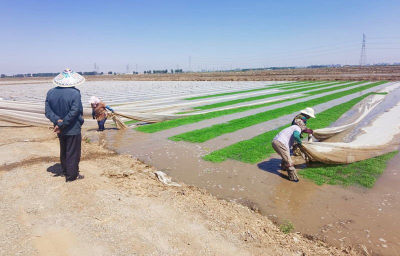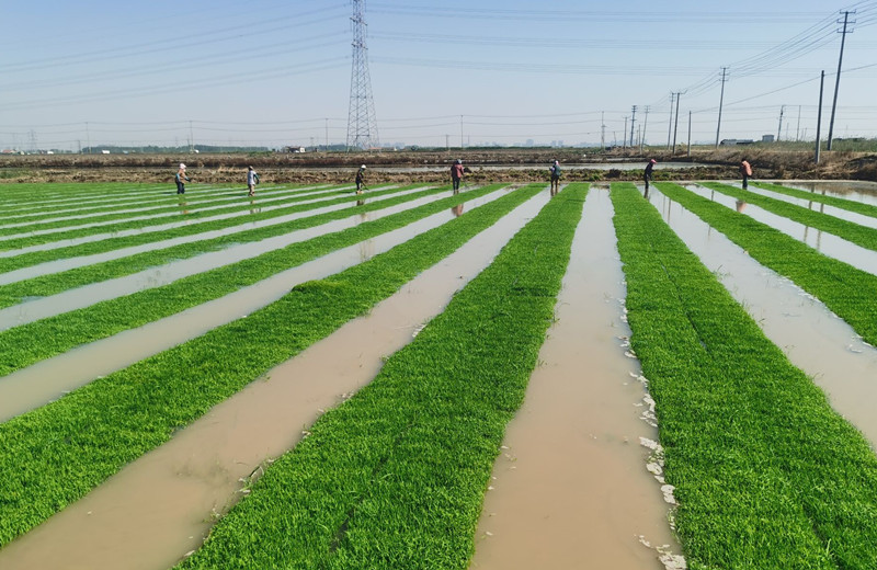 大新農(nóng)場(chǎng):機(jī)插秧苗揭開(kāi)面紗露“綠顏”