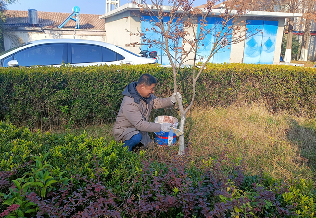 泰祥公司對(duì)場(chǎng)區(qū)綠化樹木越冬進(jìn)行 “涂白”