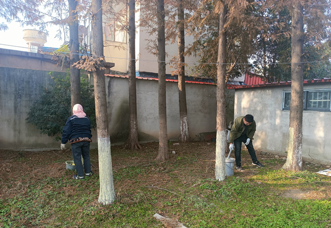 隨著天氣慢慢轉(zhuǎn)涼,為了減少綠化樹木病蟲害發(fā)生,泰祥公司對(duì)場(chǎng)區(qū)綠化樹木開展冬季“涂白行動(dòng)”,為保護(hù)綠化樹木越冬做好準(zhǔn)備。