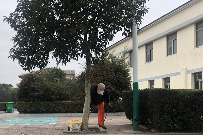 隨著氣溫的逐漸下降,場(chǎng)區(qū)植物開始進(jìn)入冬季生長(zhǎng)休眠期,為強(qiáng)化綠化養(yǎng)護(hù)管理,全力確保綠化植物安全越冬,近日,冬季樹木刷白防護(hù)工作全面啟動(dòng)。服務(wù)中心利用天氣晴好時(shí)機(jī)對(duì)場(chǎng)區(qū)區(qū)域內(nèi)的樹木進(jìn)行涂白防護(hù)。樹干刷一層“涂白劑”是入冬前為樹木進(jìn)行養(yǎng)護(hù)管理的一項(xiàng)重要內(nèi)容,不僅可以減少水分蒸發(fā),還可以增強(qiáng)樹木的防凍能力、防御病蟲害的滋生,具有殺菌的作用,為樹木來(lái)年萌發(fā)打基礎(chǔ)。