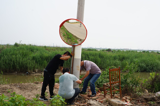7月6日,針對(duì)轄區(qū)交通安全視覺盲區(qū)隱患突出的路口,黃沙分場(chǎng)購(gòu)置并安裝凸面鏡,解決行人及車輛視覺盲區(qū),確保出行安全。 (黃沙分場(chǎng))