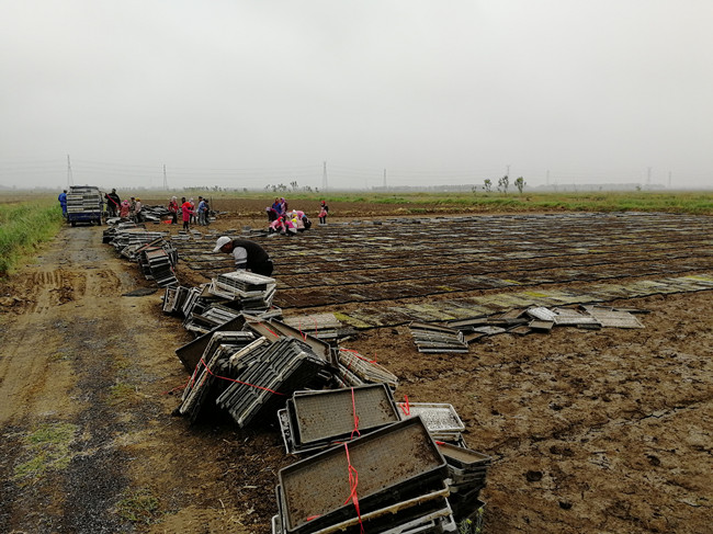 五月是水稻育秧落谷的黃金周期,大新農(nóng)場(chǎng)搶抓農(nóng)時(shí)迅速行動(dòng),育秧工作全面鋪開(kāi),田頭播地龍和暗化育秧同時(shí)進(jìn)行。5月4日,一分場(chǎng)四隊(duì)率先暗化秧擺盤(pán),條田工自發(fā)組織“運(yùn)秧”車(chē)隊(duì),將大棚暗化秧盤(pán)運(yùn)至田頭進(jìn)行擺盤(pán)。截止目前,自營(yíng)農(nóng)田育秧已播156700盤(pán)。(大新農(nóng)場(chǎng))