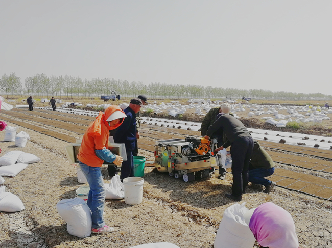 在科學(xué)浸種催芽、秧板田板面整平整細、適期精量播種的良好基礎(chǔ)上,今年繼續(xù)沿用地頭播地龍和大棚暗化相結(jié)合方式育秧,二分場7隊率先啟動了地頭播地龍育秧,暗化育秧已于4月24日開始浸種,計劃于28日播盤。(陳琛)
