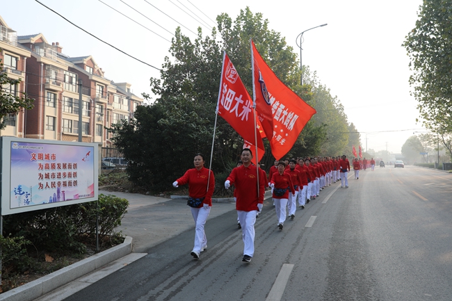 10月20日清晨,米業(yè)營銷公司聯(lián)合海州區(qū)微馬隊共同開展健步走活動,吸引了共三百余名健身愛好者參與其中。本次活動旨在進(jìn)一步宣傳提高“鹽田玉”品牌的知名度,讓廣大市民在積極運(yùn)動的過程中認(rèn)識“鹽田玉”、了解“鹽田玉”,拓寬“鹽田玉”宣傳渠道,提倡積極健康的生活方式,倡導(dǎo)廣大市民吃優(yōu)質(zhì)大米,過健康生活。本次健步走海州區(qū)石棚山景區(qū)廣場出發(fā),內(nèi)環(huán)朐陽門、海州古城、秦東門大街返回,全程3.6公里。?(顧?益)