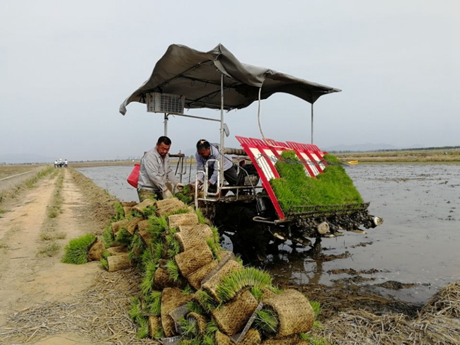 自 6月3日起,大新農(nóng)場自營水稻插秧工作就已全面展開。各條田組全力以赴投入插秧工作中,搶農(nóng)時、機(jī)械化作業(yè),為插秧贏得主動。在插秧期間,農(nóng)場工作人員深入到插秧第一線,對插秧工作進(jìn)行督促和指導(dǎo),同時叮囑做好保苗護(hù)苗等田間管理工作。
