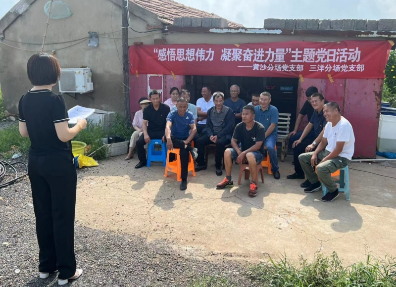8月1日上午,三洋分場(chǎng)、黃沙分場(chǎng)黨支部,在三洋分場(chǎng)生態(tài)養(yǎng)殖示范塘聯(lián)合開展“感悟思想偉力 凝聚奮進(jìn)力量”主題黨日活動(dòng),共同學(xué)習(xí)了《習(xí)近平著作選集》。