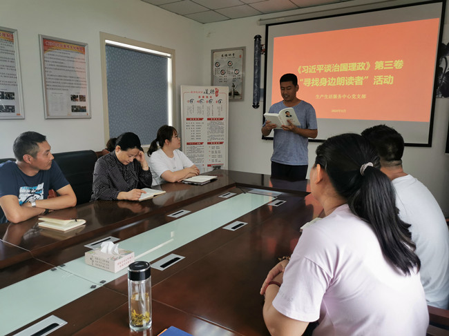 近期,生產(chǎn)生活服務(wù)中心黨支部組織黨員同志深入學習《習近平談治國理政》第三卷內(nèi)容,黨員們紛紛上臺朗讀自己喜愛的章節(jié),在學習中聯(lián)系工作理解思想理論,進一步加強對習近平新時代中國特色社會主義思想的認識,聚焦自身實際深入學,深刻感悟我將無我的情懷和自我革新的意識,切實用習近平新時代中國特色社會主義思想武裝頭腦、指導(dǎo)實踐、推動工作。(牛 瑩)