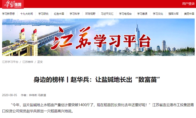 近日,我公司黨員趙華兵事跡登上“學(xué)習(xí)強(qiáng)國(guó)”江蘇學(xué)習(xí)平臺(tái),黨建品牌的影響力、引領(lǐng)力和傳播力進(jìn)一步提升。