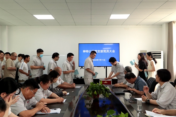 7月11日上午,神特公司黨支部召開黨員大會(huì),公司全體黨員參加會(huì)議,討論和表決王勇等8名預(yù)備黨員轉(zhuǎn)正事項(xiàng)。會(huì)議由公司黨支部書記嚴(yán)成主持。