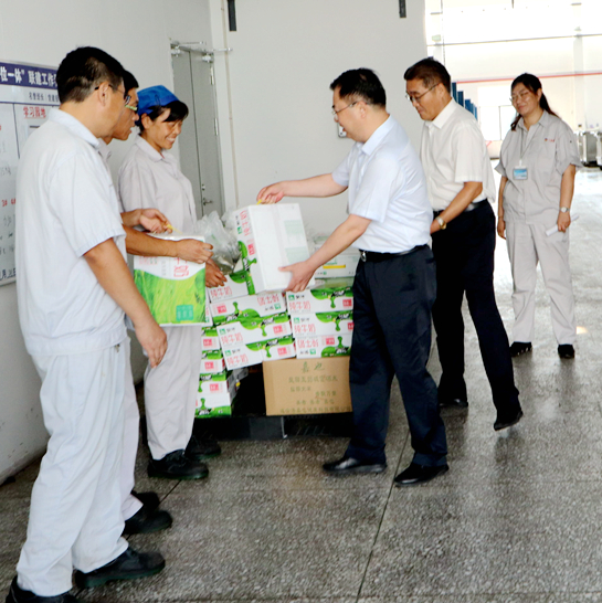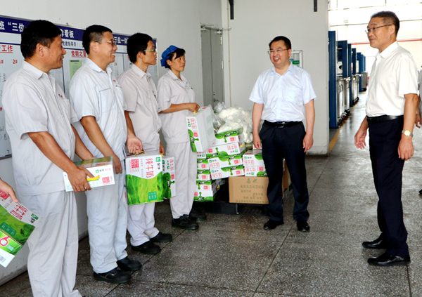 8月1日上午,集團(tuán)公司黨委副書記戴鴻鳴、工會(huì)主席劉承志來(lái)我公司慰問(wèn)生產(chǎn)一線員工,為辛勤工作的員工送來(lái)牛奶、綠豆等防暑降溫慰問(wèn)品。公司黨支部書記、副董事長(zhǎng)鄒德兵,總經(jīng)理韓立新等多位領(lǐng)導(dǎo)陪同。