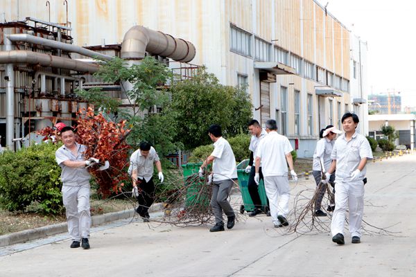 活動中,30余名黨員同志頂著烈日,他們不畏酷暑,揮汗如雨,有的在廠區(qū)的綠化帶里認真清理雜草、樹枝和垃圾,有的負責運送垃圾,到處都是熱火朝天的勞動景象。