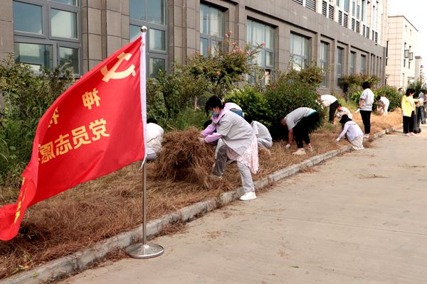 活動中,大家齊心協(xié)力,分工明確,各司其職,充分發(fā)揮不怕臟、不怕苦和不怕累的志愿者精神,認真清理辦公樓前雜草和衛(wèi)生,以十二分的熱情全身心投入活動中。經(jīng)過一個多小時的不懈努力,辦公樓前綠化帶及道路煥然一新。