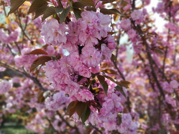 隨著梅花、迎春花、玉蘭花、杏花桃花的陸續(xù)謝幕,海棠花們開始華麗登場(chǎng)。有著藍(lán)天白云的映襯,明媚陽(yáng)光照耀下的海棠花千嬌百媚,一團(tuán)團(tuán),一簇簇,你挨著我,我擁著你,粉粉嫩嫩,不正像走出病毒霧霾,露出久違笑容的人們的笑臉嗎?