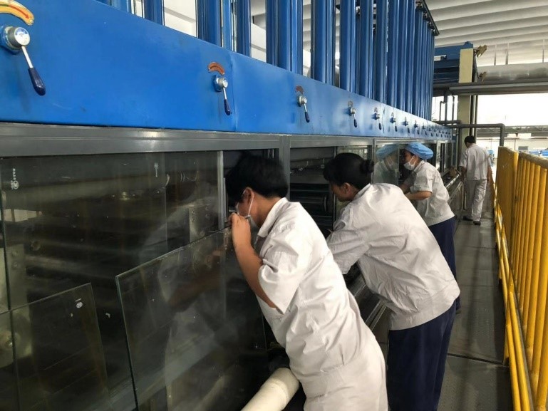 開(kāi)展生產(chǎn)線設(shè)備清理工作。后紡員工無(wú)懼炎熱天氣,擼起袖子加油干,面臨萃取機(jī)內(nèi)部空間狹小難清理難題時(shí),身材精瘦的員工爭(zhēng)相進(jìn)入萃取機(jī)內(nèi)部進(jìn)行清理作業(yè),形成“愛(ài)企奉獻(xiàn)”工作氛圍。