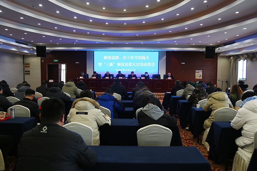為進(jìn)一步推進(jìn)思想大解放、能力大提升、作風(fēng)大轉(zhuǎn)變、工作大落實(shí)。2月29日下午,投資公司在墟溝金臺(tái)大酒店十樓會(huì)議室,召開“解放思想、實(shí)干擔(dān)當(dāng)實(shí)踐月”暨“三新”解放思想大討論動(dòng)員會(huì)。公司領(lǐng)導(dǎo)班子成員,各單位負(fù)責(zé)人,分會(huì)負(fù)責(zé)人,機(jī)關(guān)主管以上管理人員等參加會(huì)議。公司黨委書記、董事長、總經(jīng)理王德志出席會(huì)議并講話,會(huì)議由公司常務(wù)副總經(jīng)理卞霄主持。