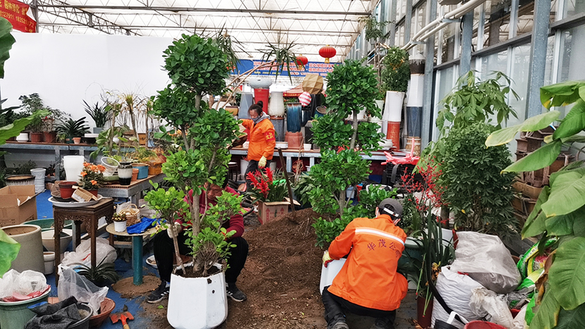 2月24日,走進(jìn)位于振興花卉城的華茂園藝項(xiàng)目部,室外冰天雪地,室內(nèi)忙碌的身影不斷穿梭……有的在配土上盆、有的在修剪養(yǎng)護(hù)、有的在擦洗裝飾,員工們分工協(xié)作、團(tuán)結(jié)一心、有條不紊地進(jìn)行花卉綠植的入盆及制作,開足馬力增效益。