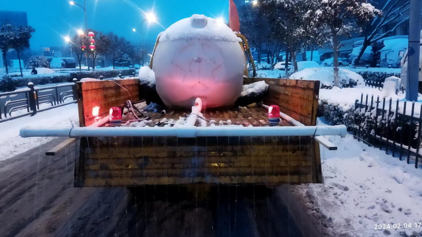 ? ? ? ??2月4日上午大雪“如約而至”,袁桂誠和他的小伙伴們按奈不住,躍躍欲試,公司領(lǐng)導一直說:沒到時候,再等等,用你們的時候肯定是最關(guān)鍵的時候。