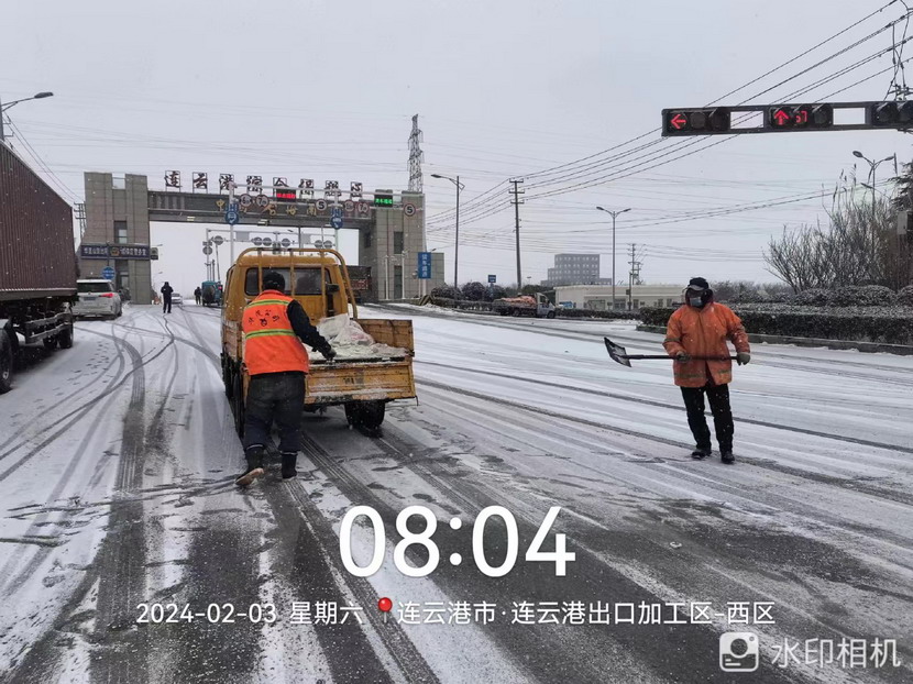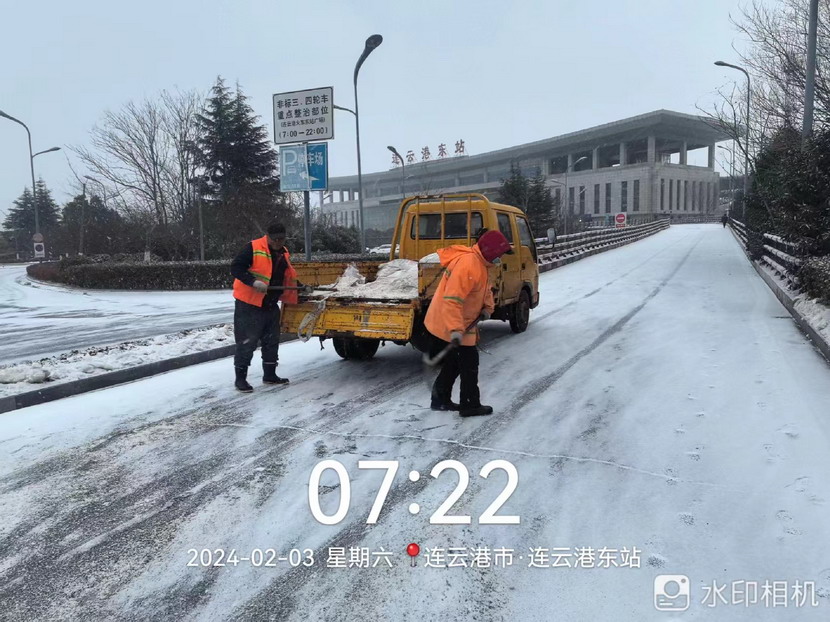 “雪情即戰(zhàn)情”。天剛蒙蒙亮,猴嘴、開(kāi)發(fā)區(qū)、連云、墟溝····連云港火車東站、馬山立交、黃海大道、花果山大道、東方大道·····到處是臺(tái)北、華茂公司的“橙色”突擊隊(duì)