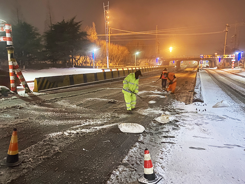 ? ? 受冷空氣影響,1月31日晚,港城突降瑞雪。公司第一時間啟動掃雪除冰應(yīng)急預(yù)案,上下聯(lián)動,道路保潔、市政養(yǎng)護(hù)、后勤保障等戰(zhàn)線的干部職工全員出動,奮戰(zhàn)在掃雪除冰第一線,突出重點區(qū)域、重點路段、橋梁涵洞清掃積雪,保證人們出行方便安全,保障園區(qū)交通順暢。