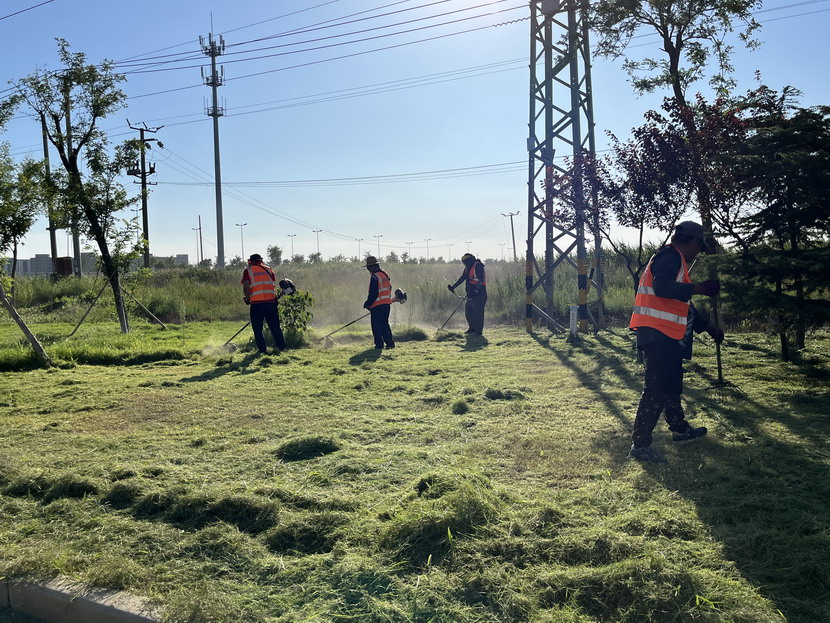 斗酷暑 陽光很烈,他們很美。滾滾熱浪,高溫驗。值爆表,室外溫度38℃,地表溫度飆升到50℃,城市像一個巨大的蒸籠”,空調房里的人們望門止步。但是,有一群與太陽肩并肩不服的鐵子,他們用黝黑皮膚擦亮奮斗的底色。你可以在小區(qū)里看到他們頭頂驕陽找路徑、穿網線、做網絡;可以在東方大道上看到他們冒著紫外線的灼烤,忙著栽種草苗、除草澆水;可以在大浦路上看到他們腳踩滾燙瀝青,忙著轉移交通桿;可以在花果山大道上看到他們汗流浹背,背著割灌機忙著打草。一件件浸透汗?jié)n的工裝,一句句樸實無華的話語,一份份汗水淋漓的擔當……翔立每位員工都在發(fā)揚“特別能吃苦、特別能戰(zhàn)斗、特別能奉獻”的鐵軍精神,攥緊拳頭,埋頭苦干。