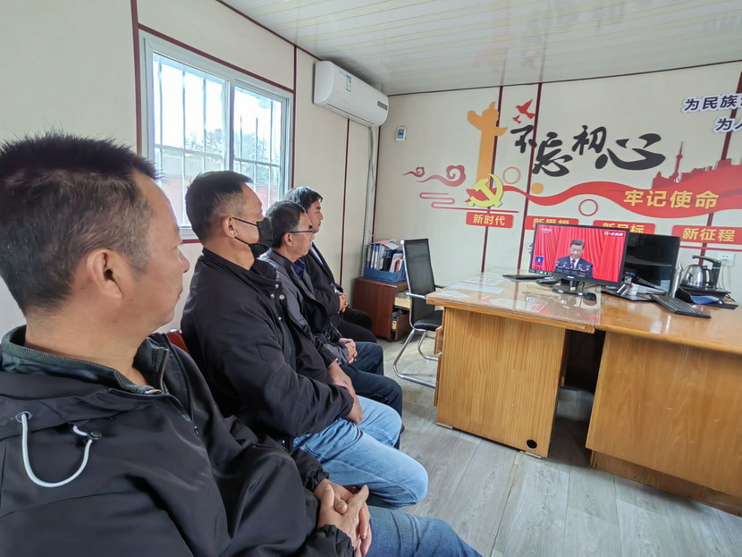? ? ? ??臺北投資公司廣大黨員干部群眾早早端坐在屏幕前,懷著激動的心情,收聽收看黨的二十大開幕會,認真聆聽習(xí)近平總書記所作的報告。公司領(lǐng)導(dǎo)王德志、楊善革、張海寧、卞霄以及各部門負責(zé)人在機關(guān)廉政會堂集中收看,各基層單位廣大黨員或在支部,或通過視頻會議,或在工作崗位休息間隙,收聽收看開幕會盛況。