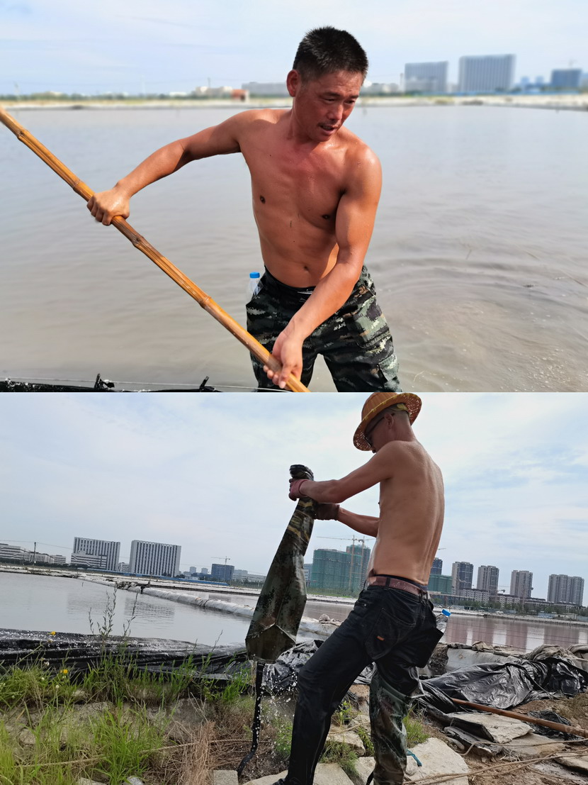 先鋒泵站,程輝師傅撩起工作服擦了擦臉上的汗水,繼續(xù)將潛水泵安置到已廢棄的灘地里,把灘地里的雨水抽干,將廢棄的灘地利用起來晾曬低濃度的鈣液,解決銷售旺季成品鈣液供不應(yīng)求難題。