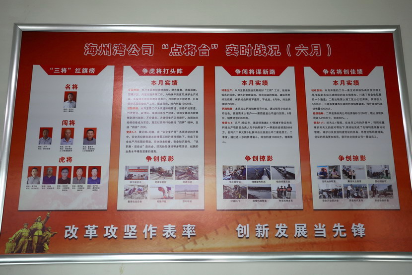 與會人員邊看邊聽講解海州灣黨支部規(guī)范化展板和本月書記項目的落實情況,以及在海州灣黨建活動室觀摩學習了上半年黨建基礎臺賬和活動影像。各黨支部就基層黨組織規(guī)范化及書記項目“點將臺”的落實情況作了匯報交流。黨委副書記楊善革針對各支部的黨建工作情況作了詳細的點評,指出各支部黨建工作中存在的不足,并要求各支部立即整改。